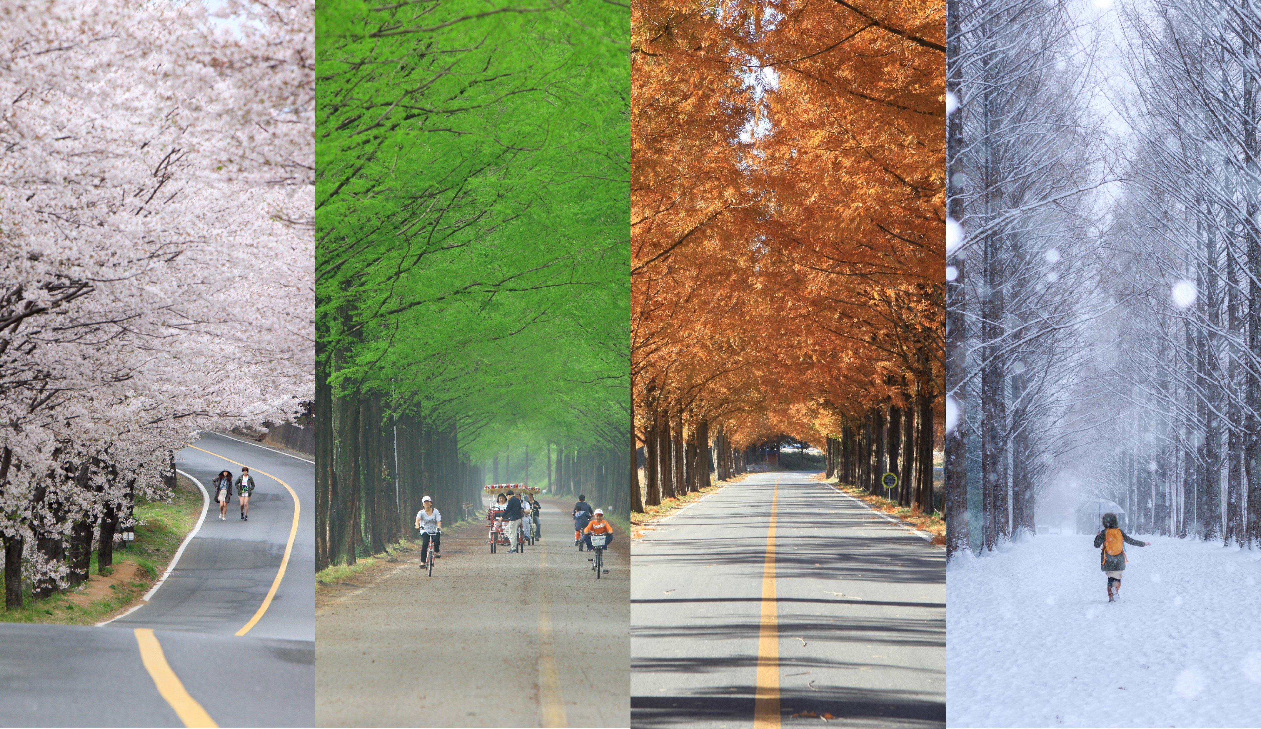 Iklim Korea tergolong ke dalam iklim benua jika dilihat dari temperatur dan angin yang bertiup dan curah hujan. Iklim Korea dibedakan menjadi empat jenis musim, yaitu: musim semi, musim panas, musim gugur, dan musim dingin. Selama kurun waktu musim gugur, iklim di Korea cukup hangat, cuaca pun cerah, langit berwarna biru, dengan dedaunan menakjubkan. Musim dingin sangat dingin dan kering, namun merupakan waktu tepat untuk berkunjung ke Korea bagi wisatawan yang tertarik dengan olahraga musim dingin, karena Korea memiliki banyak tempat untuk olahraga ski. Musim semi yang dimulai pada bulan April hingga Mei juga sangat indah dengan pohon bunga ceri ( cherry blossom ) bermekaran. Namun, musim ini tergolong musim padat pengunjung, sehingga turis perlu memesan terlebih dahulu untuk dapat memastikan akomodasi dan fasilitas wisata tersedia. Bulan-bulan musim panas sangatlah lembab, panas dan agak ramai, karena ketika musim hujan sudah tiba maka banyak kegiatan yang harus disesuaikan dengan fluktuasi hujan yang lebat. MUSIM SEMI Musim semi dimulai pada akhir bulan Maret hingga bulan Mei. Suhu sejuk dan cuaca cerah menjadikan musim semi sebagai musim paling ideal untuk berwisata. Pengunjung dapat menikmati deretan pohon bunga ceri ( cherry blossom ), hamparan bunga Forsythia , bunga Azaleas , bunga Magnolias , bunga Lilacs dan berbagai jenis bunga lainnya yang bermekaran pada puncak musim Semi. MUSIM PANAS Musim Panas dimulai pada bulan Juni hingga Agustus, dan puncak musim panas adalah bulan Agustus. Keringnya musim dingin dan musim semi seakan menghilang selama musim panas tiba karena suhu musim panas sangat tinggi dan lembab. Umumnya, antara akhir bulan Juni hingga pertengahan bulan Juli di Korea sudah masuk musim hujan, karena adanya pergantian musim. Selama musim hujan di Korea tidak ada terik panas, dan untuk beberapa minggu biasanya berawan disertai hujan lebat hingga tiga minggu. Frekuensi hujan disebut Jangma , dan angin topan secara langsung bisa mengakibatkan kerusakan pada tanaman. Pada musim panas, banyak terdapat buah-buahan di antaranya adalah buah Semangka, Melon, buah Persik, dan banyak sayuran. Selain itu, wilayah pegunungan tertutup oleh tanaman hijau. Untuk menghindari teriknya panas matahari, orang Korea biasanya pergi mendaki gunung, pergi ke pesisir pantai, atau ke daerah lembah untuk menikmati waktu liburan musim Panas. MUSIM GUGUR Musim Gugur di Korea dimulai pada bulan September hingga bulan November. Udara di musim gugur dingin dan kering, disertai langit biru dengan sedikit awan. Orang Korea menyebut musim gugur dengan sebutan Cheon-go-mabi . Panasnya musim panas sepertinya masih bersisa di bulan September. Udaranya panas pada waktu siang, tetapi udara di pagi hari dan sore dingin. Pada bulan Oktober, terdapat sedikit curah hujan dan tingkat kelembaban di udara pun menurun, sehingga cuacanya sedikit kering. Di akhir musim panas hingga awal musim gugur, angin topan muncul dari arah Pasifik Selatan. Musim gugur merupakan musim indah dengan dedaunan berjatuhan. Dedaunan pohon Maidenhair dan pohon Maple berubah warna menjadi kuning keemasan dan merah di seluruh Korea. Selama musim gugur, masyarakat Korea senang pergi mendaki gunung untuk menikmati pemandangan indah dari dedaunan musim gugur. Warna gradasi pepohonan dan dedaunan yang berjatuhan di musim gugur mengundang banyak pengunjung baik domestik dan internasional. Musim gugur juga dikenal sebagai musim panen melimpah, di antaranya panen padi, ubi, buah apel, buah persik, dan buah Jujube. Istilah Cheongomabi berarti “langit tinggi dan kuda gemuk’, menggambarkan musim gugur. Pada musim ini, langit sangat biru, jernih dan bersih, sehingga sangat bagus untuk pergi tamasya, ditambah dengan musim panen berlimpah membuat pilihan kuliner beragam. MUSIM DINGIN Musim Dingin di Korea dimulai antara bulan Desember hingga Februari, dengan suhu terdingin pada sekitar bulan Januari mencapai minus 5 hingga 10 derajat Celcius. Di musim dingin, hari-hari menjadi lebih pendek, sinar matahari muncul lambat dan matahari tenggelam lebih awal. Biasanya terdapat siklus tiga hari dingin yang diikuti dengan empat hari hangat, disebut dengan istilah Samhansaon . Daerah pegunungan di provinsi Gangwon-do turun hujan salju sejak awal musim dingin, dengan suhu dingin dan kering karena angin berhembus dari Siberia. Antara bulan Desember hingga bulan Februari terdapat liburan hari-hari besar, yaitu: hari Natal, Tahun Baru Masehi, dan Tahun Baru Lunar. Sementara antara bulan Februari hingga awal bulan Maret adalah masa untuk wisuda dan awal masuk sekolah. Untuk daerah pedesaan, selama musim dingin lahan pertanian istirahat sejenak sampai tiba masa bercocok tanam di musim semi, selain itu beberapa jenis sayuran tumbuh dan dikembangkan di dalam rumah kaca. Antara bulan November hingga Desember biasanya dilakukan persiapan pembuatan Kimchi dengan skala besar yang bisa dikonsumsi sepanjang musim dingin. Proses persiapan Kimchi dengan skala besar ini disebut Gimjang .