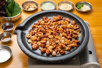 A generous amount of seasoned parboiled cockles is served atop of rice with a mix of various kinds of chopped vegetables. Cockle bibimbap is popular in cities located near mudflats, such as Beolgyo, Boseong and Suncheon of Jeollanam-do. Cockles are in season from December to March, and is particularly more delicious in February. You can enjoy the chewy texture of cockles.