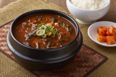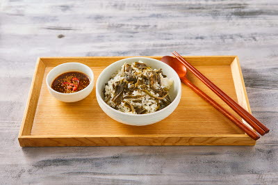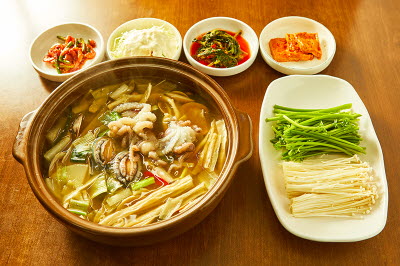 Abalone porridge is called the "King of porridge" in Korea. Thinly sliced abalone and soaked rice are boiled in water. Add abalone intestines and the porridge will turn a gentle yellow-green color with a unique flavor and a pleasantly bitter taste. Abalone caught from the sea near Jeju Island was offered to kings in the past. Abalone tastes best from April to June, whereas abalone caught in winter is not recommended. Abalone porridge is a popular energy-boosting food.