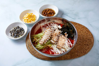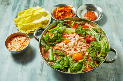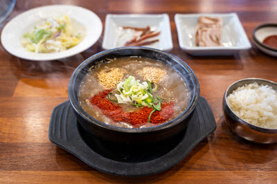 Hard clams, also called baekhap in Korean, are known for their savory and sweet taste of the hard clam meat. The milky broth is quite refreshing. Only some peppers and crown daisy are added to the soup to highlight the natural flavor of the clams.