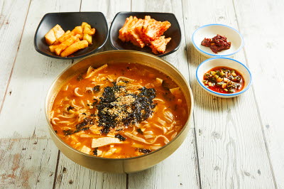 Chicken meat is cut into bite sizes and marinated in red chili paste sauce for seven to eight hours. It is then stir-fried with cabbage, sweet potatoes, onions, green onions, and rice cake sticks. This spicy chicken dish is frequently enjoyed with lettuce and perilla leaves. Chuncheon, Gangwon State is the birthplace of the spicy stir-fried chicken. There is a dakgalbi alley in Chuncheon.