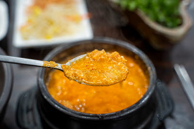 Beef brisket, or chadol-bagi, refers to fatty cuts attached to the middle of the beef brisket bone. The white fat resembles pebbles (or chadol in Korean) and is quickly cooked right after being placed on a grill plate, so you can enjoy the taste right away. You can also put brisket in a soybean paste jjigae. The fatty cut boasts a rich flavor.