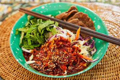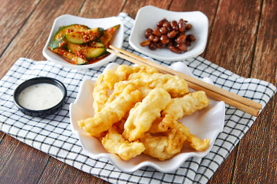 The grilled sea eel began in Busan. Sea eel, called gomjangeo (a Busan dialect for meokjangeo) is grilled on a gridiron. Sea eels are simply salted and grilled to highlight the mild taste of the fish or they are glazed with a spicy red chili paste sauce. Grilled sea eel is a popular food with alcohol.