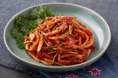 Parboiled octopus, cabbage, onions, carrots, spring onions, and red chili peppers are stir-fried with a seasoning made with red chili paste, red chili powder and soy sauce. The spicy taste of the stir-fried octopus is impressive. Noodles can be added.