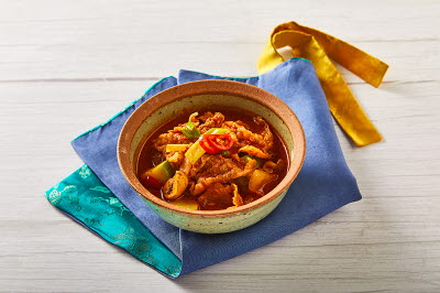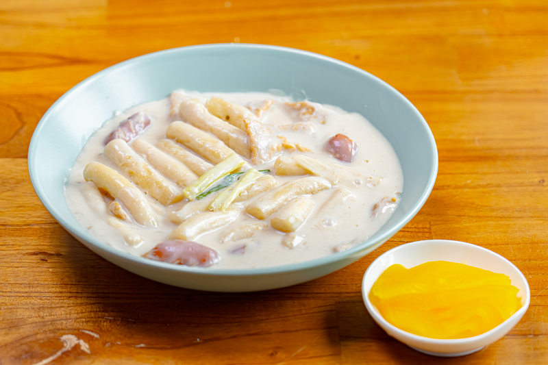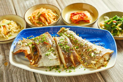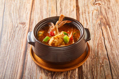 This hangover soup showcases an excellent balance between the flavors of thick simmered pork broth and soft bracken. A specialty food that represents Jeju Island, the bracken is collected in April during the short rainy season. Afterward, it’s dried and used for cooking. Soybean paste is included to remove the smell of meat, while buckwheat powder and perilla create the thick and earthy flavor of the sauce.