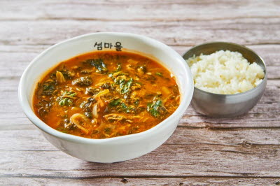 This is a soup made by gently mixing in soybean paste with water and adding generous amount of the cabbage’s outer leaves and perilla seeds. Afterward, this mixture is boiled for a long period. The broth, cooked until the leaves become tender, is deep and savory. Thanks to the perilla seeds, the broth is thick and on the heavy side, making it the perfect pair for rice.