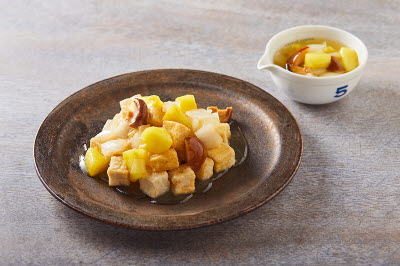 In summer, this is a great way to enjoy abalone as a cold dish. The chewy abalone and crisp vegetables are mixed into a sweet and sour broth. The cold broth not only satisfies your appetite but also beats the summer heat. Sometimes, noodles or rice are mixed into the broth.