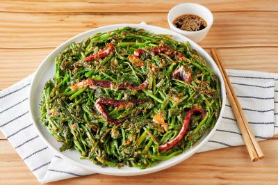 This dish is made with cut bamboo shoots steamed with a seasoned minced chicken filling. The young bamboo shoots come from the underground stems of bamboo trees. This ingredient’s light flavor and chewy texture are perfectly combined with the deep flavors of seasoned chicken. Bamboo shoot restaurants are easily found in Damyang, the town known for bamboo trees.