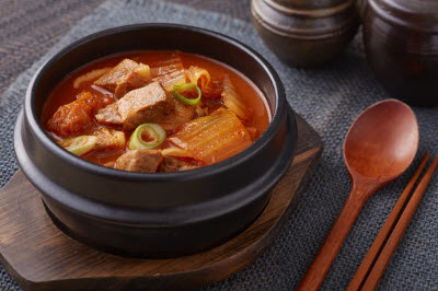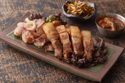 Clam salad is a food to eat in spring. Clams grown in tidal flats in the area of Gangjin, Haenam, and Yeongam in Jeollanam-do are exceptionally chubby and sweet. Clam sediments are removed in light salt water for a day, and shelled clams are slightly blanched in hot water. Blanch clam meat in water and blanch vegetables such as summer squash, water parsley, and chives are seasoned with sweet and sour red pepper paste with vinegar. If you put plenty of clam salad on white rice and mix it with savory sesame oil, your mouth will be full of spring energy.