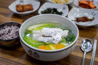 Traditional Korean food, grilled hard clams, is a dish that grills minced clam flesh and beef, mixing them with vegetables, and filling them with clam shells. It is a precious food that takes time and effort to make and is served on guest's meal, liquor table, or at wedding feasts. Recently, grilled hard clams are enjoyed as simply grilling the whole clam, cutting them into small pieces, seasoning them, and then putting them back on the shell. It is sold at grilled clam restaurants located on the west coast such as Incheon. Grilled hard clams is chewy, sweet, and salty with the smell of the sea.