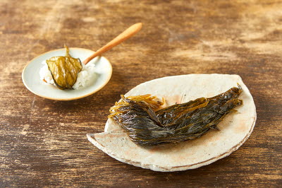 This traditional sweets is made by mixing rice powder and powdered soybean into a dough, steamed, then when it dries is grilled. Afterward, it is glazed with malt syrup and rolled into a puffed rice powder. Malt syrup-glazed soybean chips are traditional sweets from Sunchang, Jeonbuk State. Unlike other similar sweets, malt syrup-glazed soybean chips are not deep-fried but grilled, giving them a cleaner flavor. A dough is formed from powdered soybeans, sweet rice powder, and water, which is then rolled out into a thin sheet, sliced into diamond-shaped chips, and left to dry. The chips are grilled, glazed with starch or malt syrup, then rolled in a puffed rice powder. This dish is known as “Kongkkaejal” in Jeonbuk State and “Kongyugwa” in Jeollanam-do. Each bite comes with a chewy and crispy texture, filled with a deeply rich flavor from the powdered soybeans.
