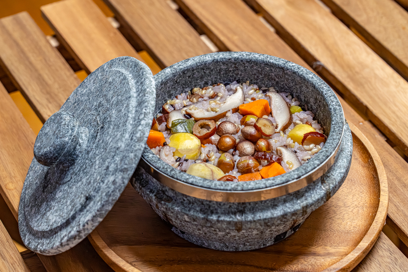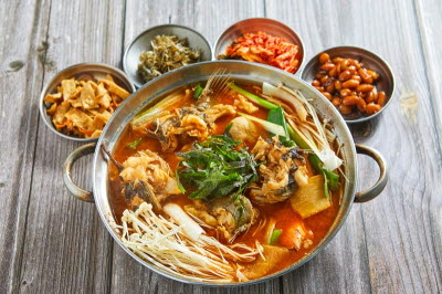 This dish is a spicy stir-fry of octopus, pork belly, and bean sprouts. From the plump and springy octopus to chewy pork belly and crunchy bean sprouts, this dish presents a wide range of flavors that unfold in one’s mouth. The pan is first heaped with bean sprouts, followed by pork belly, octopus, glass noodles, perilla leaves, and sauce, creating a mouthwatering mountain of flavors. Mix and stir-fry the ingredients and let the spicy sauce seep into the ingredients as they cook to perfection. Make sure to eat the octopus first before it toughens.