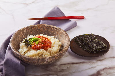 This gimbap is made with basic gimbap ingredients and tuna, tossed with mayonnaise. To make gimbap, spread a thin layer of steamed rice over a roasted laver sheet, lay the eggs, carrot, pickled radish, cucumber, ham, and other fillings, and roll. It is a dish that can also take plenty of other passengers along for the ride. One such ingredient is tuna, with a rich taste and nutrition profile that established its popularity as a foodstuff. Remove any excess oil from the tuna and toss with mayonnaise and sugar to create this moist and sweet filling for the gimbap.