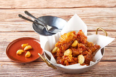 King oyster mushrooms are cultivated as a substitute for wild pine mushrooms. While it cannot match the latter’s intense fragrance and taste, it is quite similar in its chewy texture. This vitamin C-rich mushroom is excellent salt-grilled. The version with sauce involves first cutting the bottom of the king oyster mushroom and slicing it thinly. Then, prepare the sauce with red chili paste, chili pepper powder, minced garlic, green plum preserves, and cooking wine. Pan-fry the king oyster mushrooms on an oiled pan. Bring the sauce to a boil, and place the king oyster mushroom slices into the sauce for braising. Plate and garnish with scallion.
