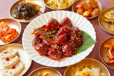 This kimchi is made out of bitter lettuce, which is blanched beforehand to remove its bitterness. Bitter lettuce is often blanched or put into a salted water bath to draw out the bitter taste before cooking. Once the bitterness has been drawn out, it is tossed with garlic, ginger, salted seafood sauce, chili pepper powder, and other kimchi spices before being layered into an earthenware pot for fermentation. Once fermentation imbues the kimchi with a sour tang, the lingering traces of bitterness come to the fore to create an appetizing harmony.