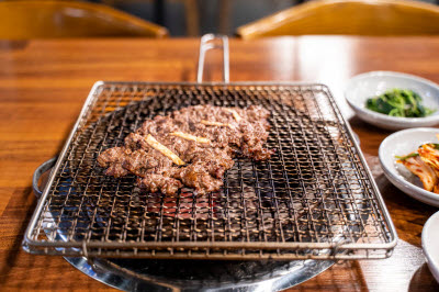 A gimbap made with braised burdock roots. It can refer to a gimbap made with only braised burdock roots without any other ingredients, or a regular gimbap with burdock roots. Braised burdock roots are made by julienning burdock, frying it in perilla oil, and boiling it with soy sauce, rice wine, and starch syrup. Burdock is such a hard vegetable that you can feel the crunchy texture even after it's been boiled in soy sauce. It adds a sweet and salty flavor to the gimbap.