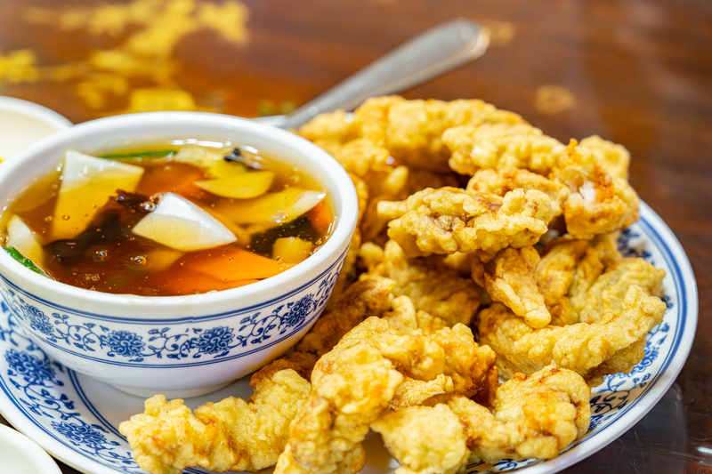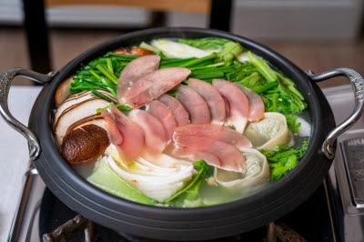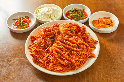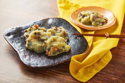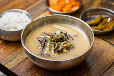 This is a radish kimchi stuffed with seasonings in cuts that resemble fish scales. For seasonings, mix thinly chopped radish with minced salted shrimp, red pepper powder, water parsley, chives, garlic, ginger, and glutinous grass, and season with salt. Put seasonings between the cuts of radishes pickled with salt in advance, wrap it with cabbage leaves, and preserve it in a jar, or preferably a crock. Pull out the kimchi only as needed upon serving. The dish tastes better when it is prepared with a winter radish.