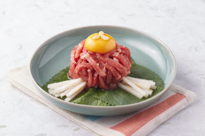 This mandu is made with buckwheat skin. Buckwheat is a fast-growing and hardy grain, often grown in the Gangwon State and Jeju regions. Buckwheat is rich in fiber and is effective for arthritis and high blood pressure. Buckwheat powder is kneaded with warm water to make the mandu skin. The filling features minced pork, carrot, onion, bean curd, glass noodles, and eggs. Buckwheat mandu appears to be less sophisticated than other mandu, thanks to its dark-brown color, but one taste of the chewy and rich skin is enough to dispel any doubts about its quality. Above all, buckwheat is healthier than flour, making it great for patients suffering from lifestyle diseases, obesity, or high blood pressure.