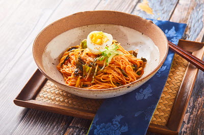 Kimchi udon is a Korean-style fusion noodle dish featuring udon boiled with kimchi. The broth is typically made with anchovies, kelp, and dried bonito flakes, while well-fermented kimchi adds a spicy kick. The thick, chewy udon noodles pair perfectly with the hot, flavorful kimchi broth. In Korea, this dish is often enjoyed with drinks or served as a comforting hangover meal.